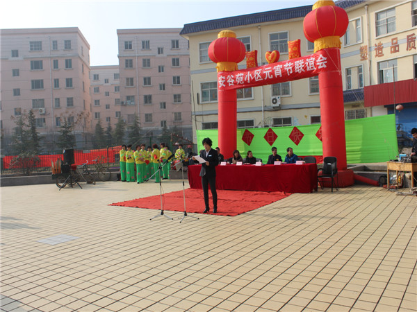 (信息員:董麗娜)2月22日,正月十三,城投物業(yè)安谷苑小區(qū)物業(yè)中心在小區(qū)中心廣場(chǎng)舉辦了元宵節(jié)聯(lián)誼會(huì)。咸戶北路社區(qū)主任梁波,陳陽(yáng)辦事處主任劉英,小區(qū)項(xiàng)目部領(lǐng)導(dǎo)趙培生,小區(qū)業(yè)主代表?xiàng)钪静拧⒍堃约拔飿I(yè)公司副總魏述剛和各部門負(fù)責(zé)人出席了本次活動(dòng)。