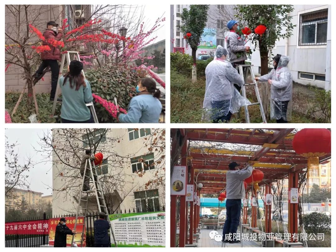 在新春佳節(jié)來(lái)臨之際,為給小區(qū)業(yè)主居營(yíng)造一個(gè)和諧、喜慶、祥和的新春氛圍,城投物業(yè)在各項(xiàng)目開(kāi)展迎新春“大掃除、大清洗、大整治”和春節(jié)氛圍營(yíng)造活動(dòng)。 大掃除現(xiàn)場(chǎng),工作人員積極發(fā)揮奉獻(xiàn)精神,不怕臟、不怕累,認(rèn)真清理小區(qū)綠化帶里的垃圾、樓道中的小廣告。小區(qū)業(yè)主們也主動(dòng)加入清理活動(dòng)中,大家齊動(dòng)手,小區(qū)環(huán)境煥然一新,干凈整潔的環(huán)境展現(xiàn)和諧美麗的小區(qū)面貌,更增添了喜慶的節(jié)日氛圍。