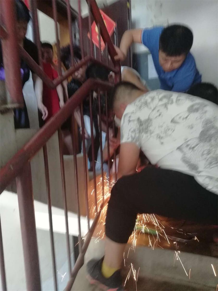 7月12日下午5:20,安谷苑小區(qū)物業(yè)辦接到緊急救助,2歲的小女孩因貪玩把頭卡在了樓梯欄桿的縫隙中,疼得她哇哇大哭直喊“奶奶”,情況十分危急!